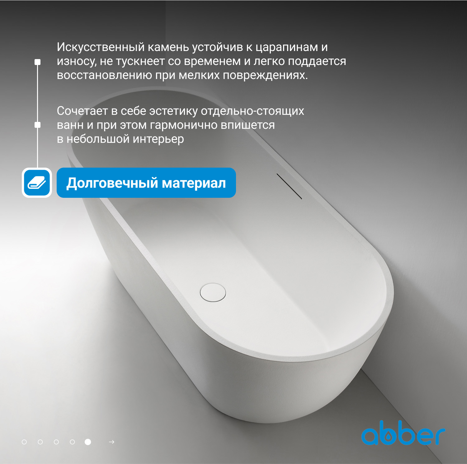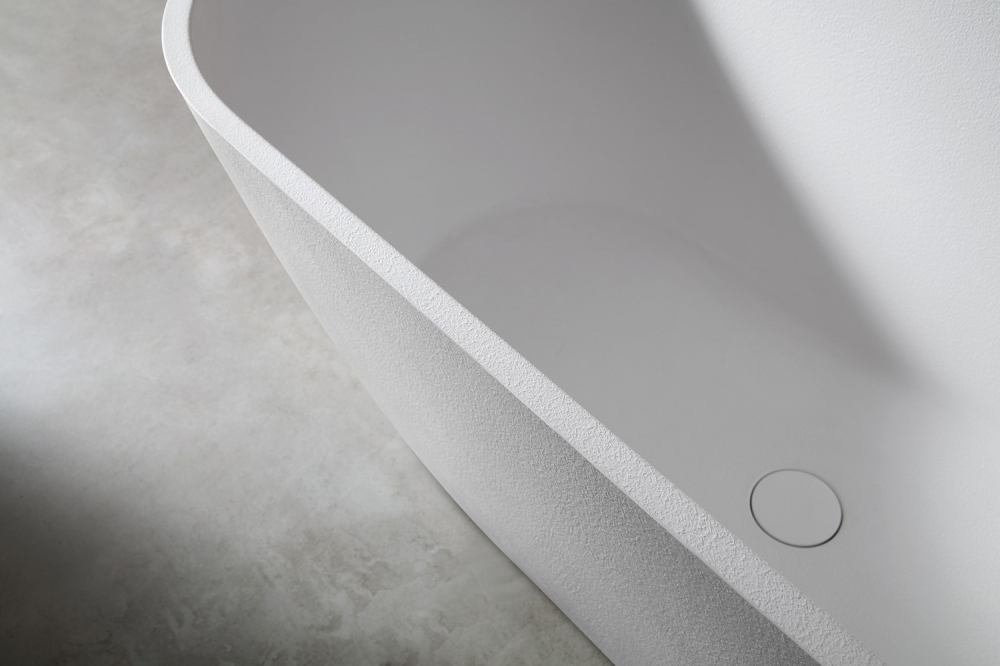Ванна отдельностоящая Abber Frankfurt 170x75 см AM9941 из искусственного камня, слив-перелив в комплекте, цвет - белый.
