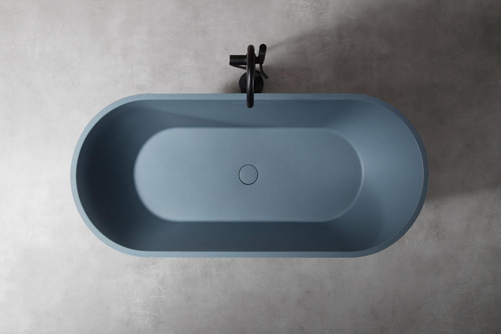 Ванна отдельностоящая Abber Frankfurt 170x75 см AM9941G из искусственного камня, слив-перелив в комплекте, цвет - серый.