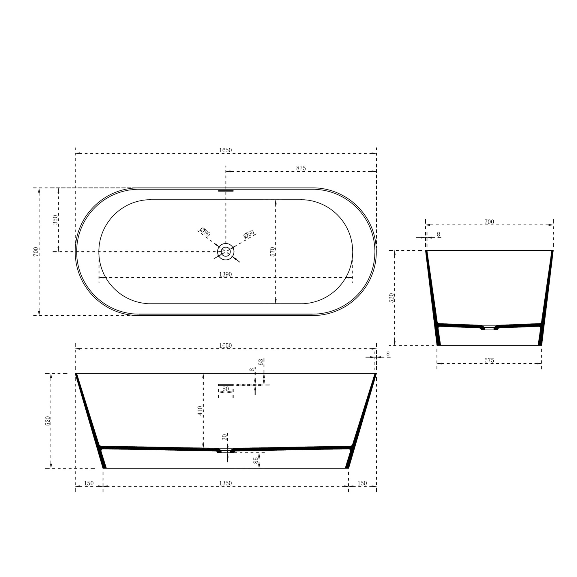 Ванна отдельностоящая Abber Stein 165x70 см AS9622, белый матовый
