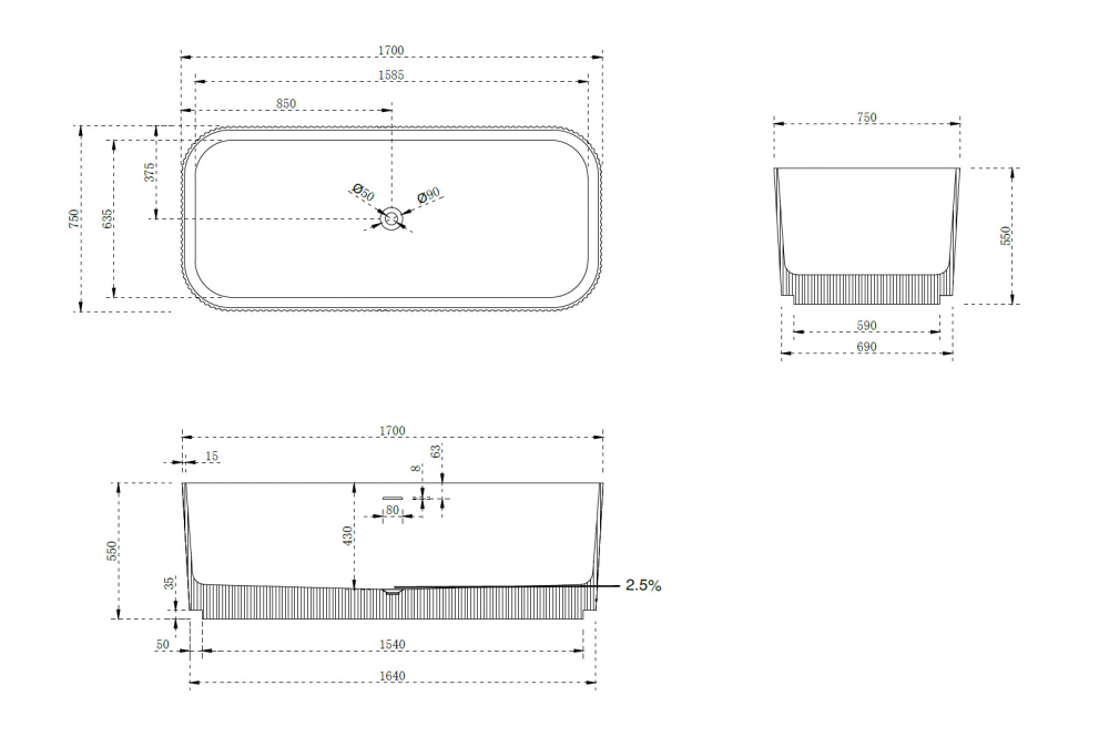 Ванна отдельностоящая Abber Stein 170x75 см AS9663