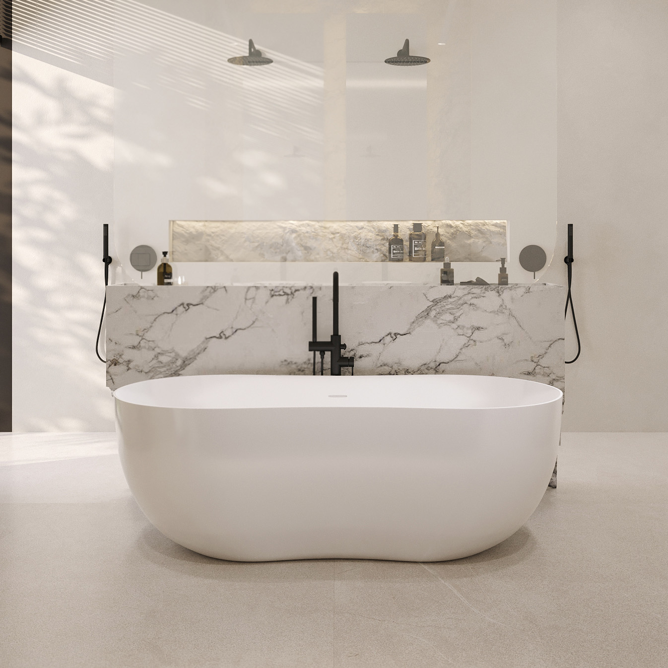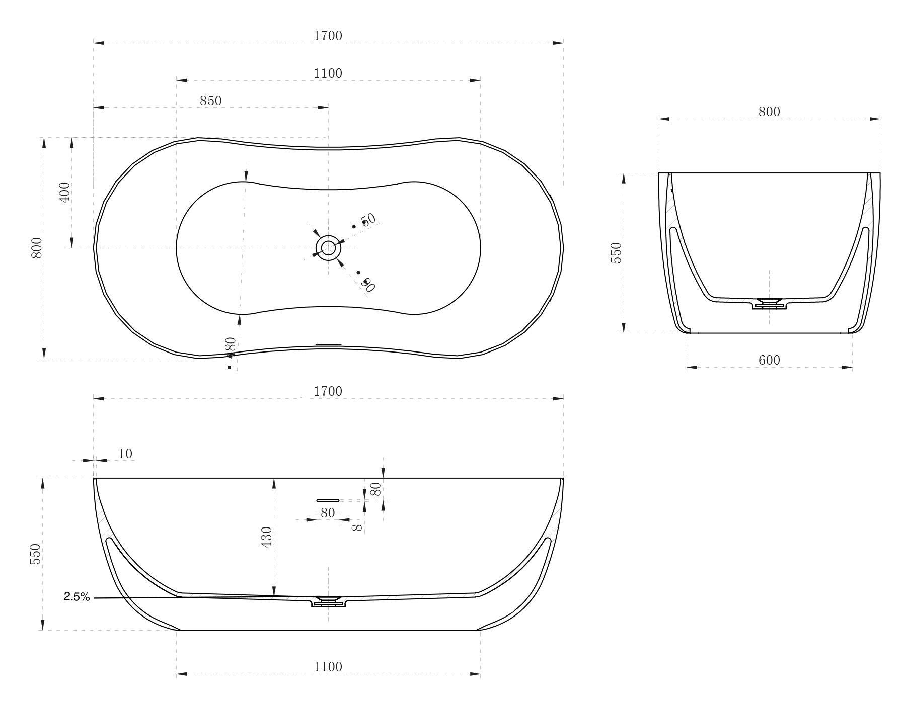 Ванна отдельностоящая Abber Stein 170x80 см AS9604 из искусственного камня, слив-перелив в комплекте, цвет - белый матовый.