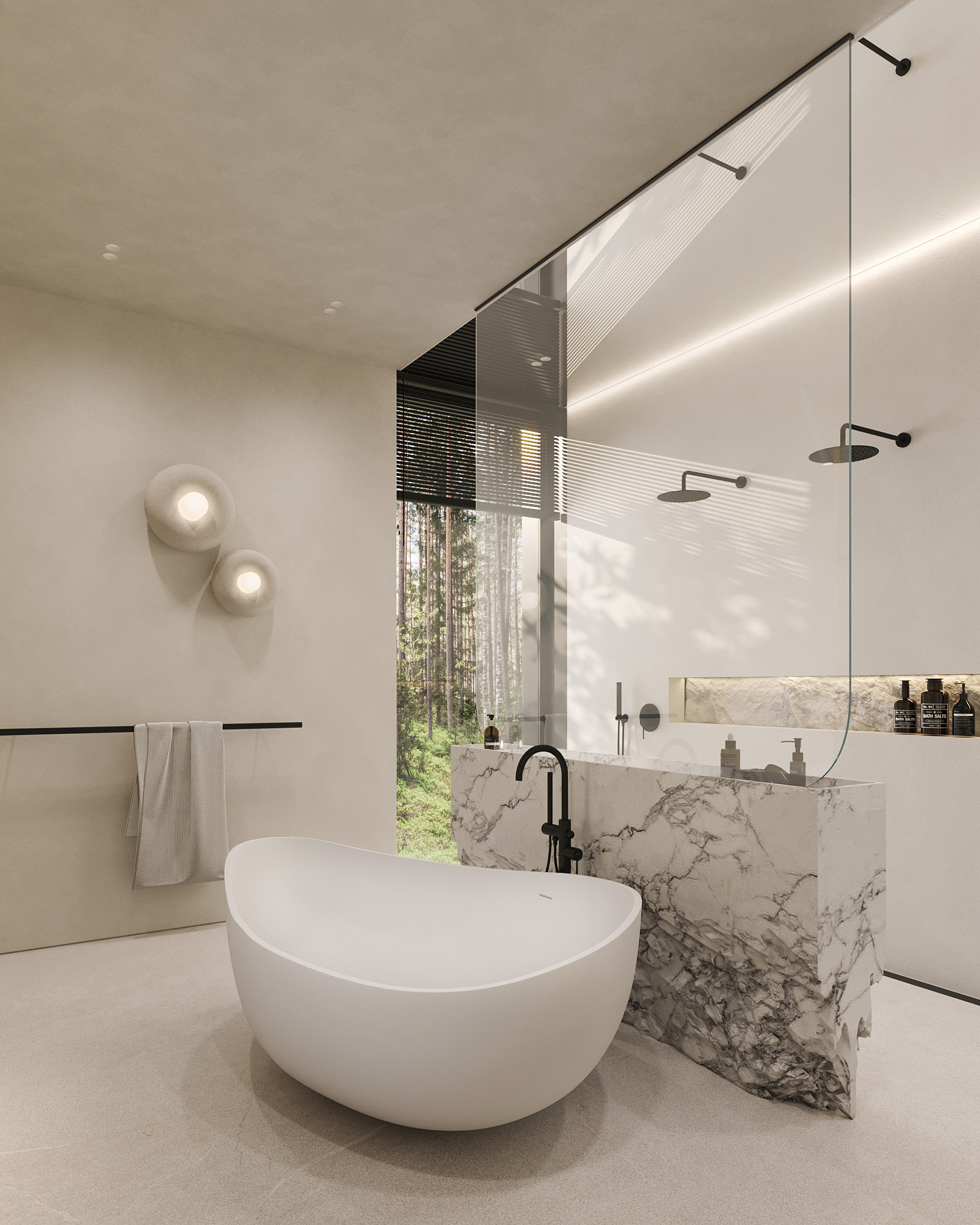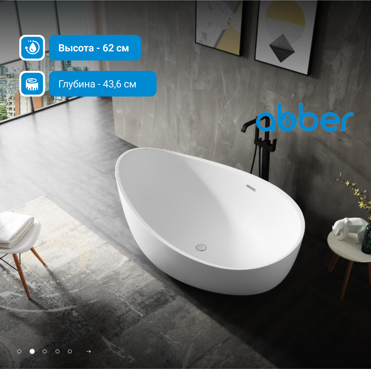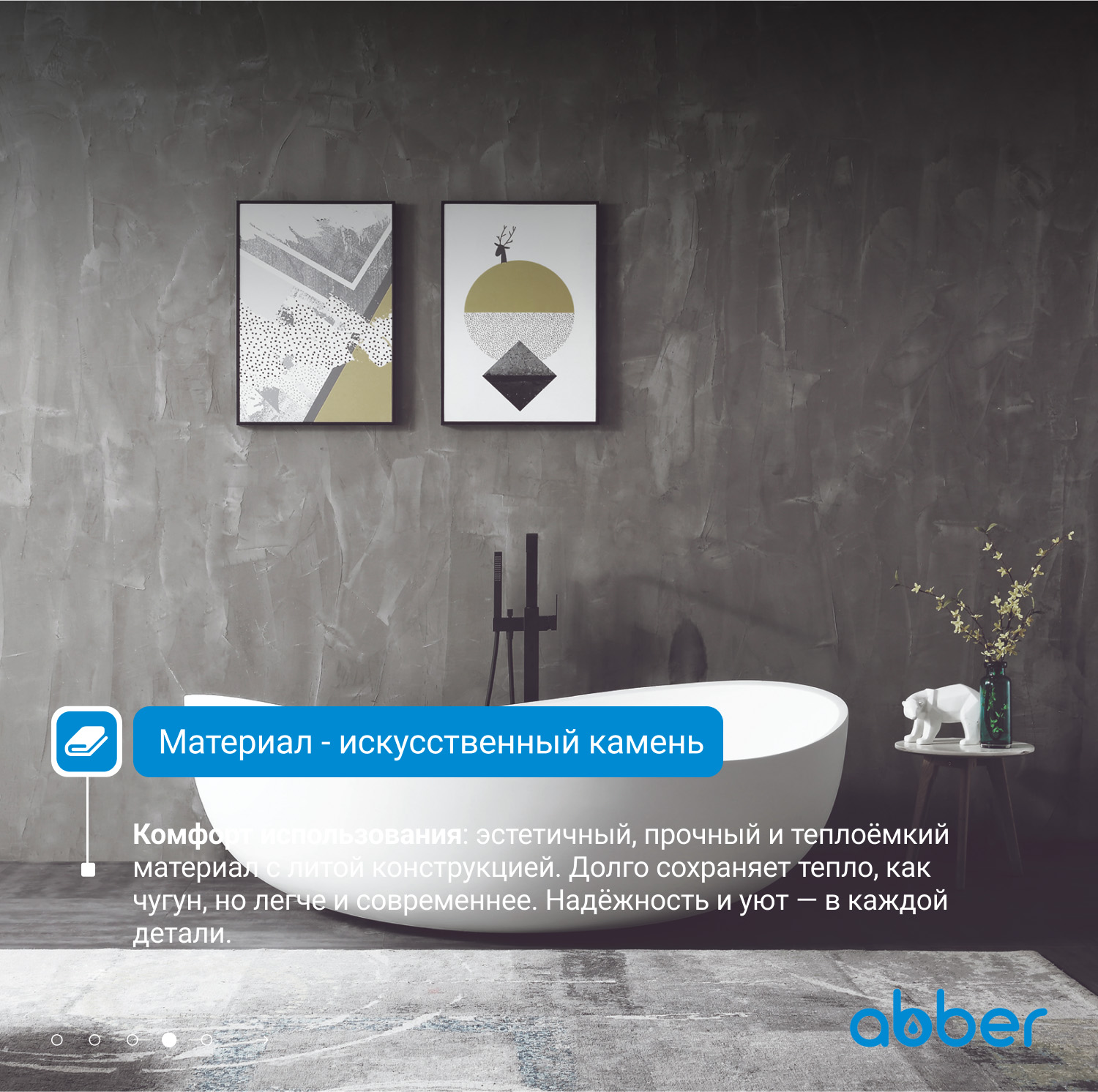 Ванна отдельностоящая Abber Stein 180x110 см AS9639 из искусственного камня, слив-перелив в комплекте, цвет - белый матовый.