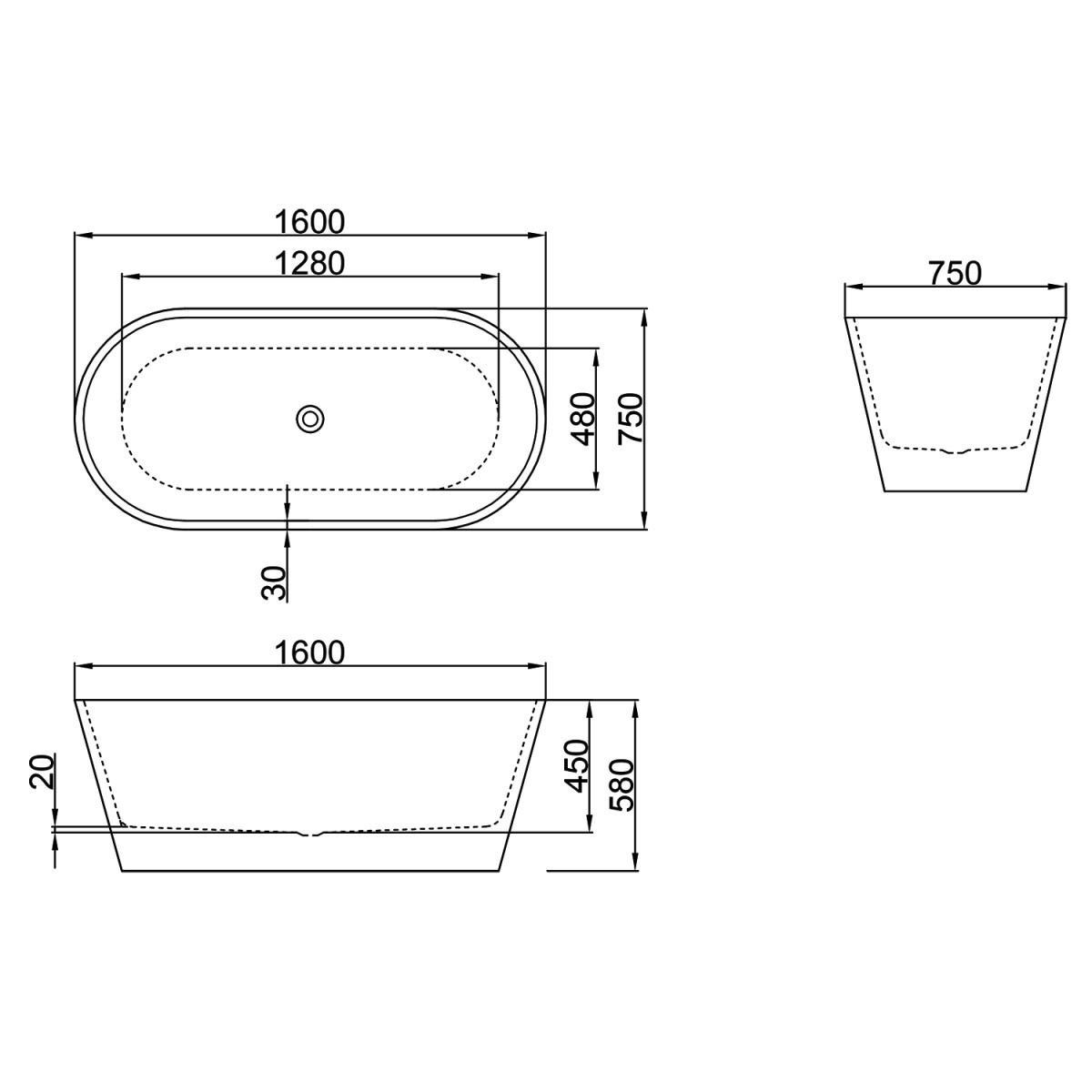 - Размеры ванны 1600x750x580 мм позволяют с удобством принимать водные процедуры, обеспечивая достаточное пространство для расслабления.