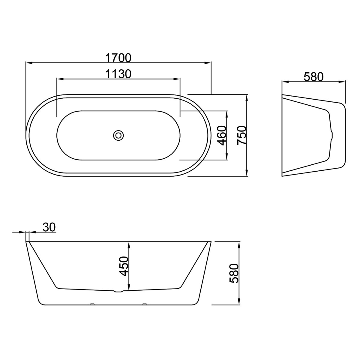 - Размеры ванны 1700x750x580 мм позволяют с удобством принимать водные процедуры, обеспечивая достаточное пространство для расслабления.