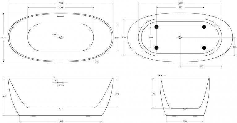 Ванна отдельностоящая BelBagno BB414-1700-800 1700x800x610, в комплекте со сливом-переливом цвета хром.