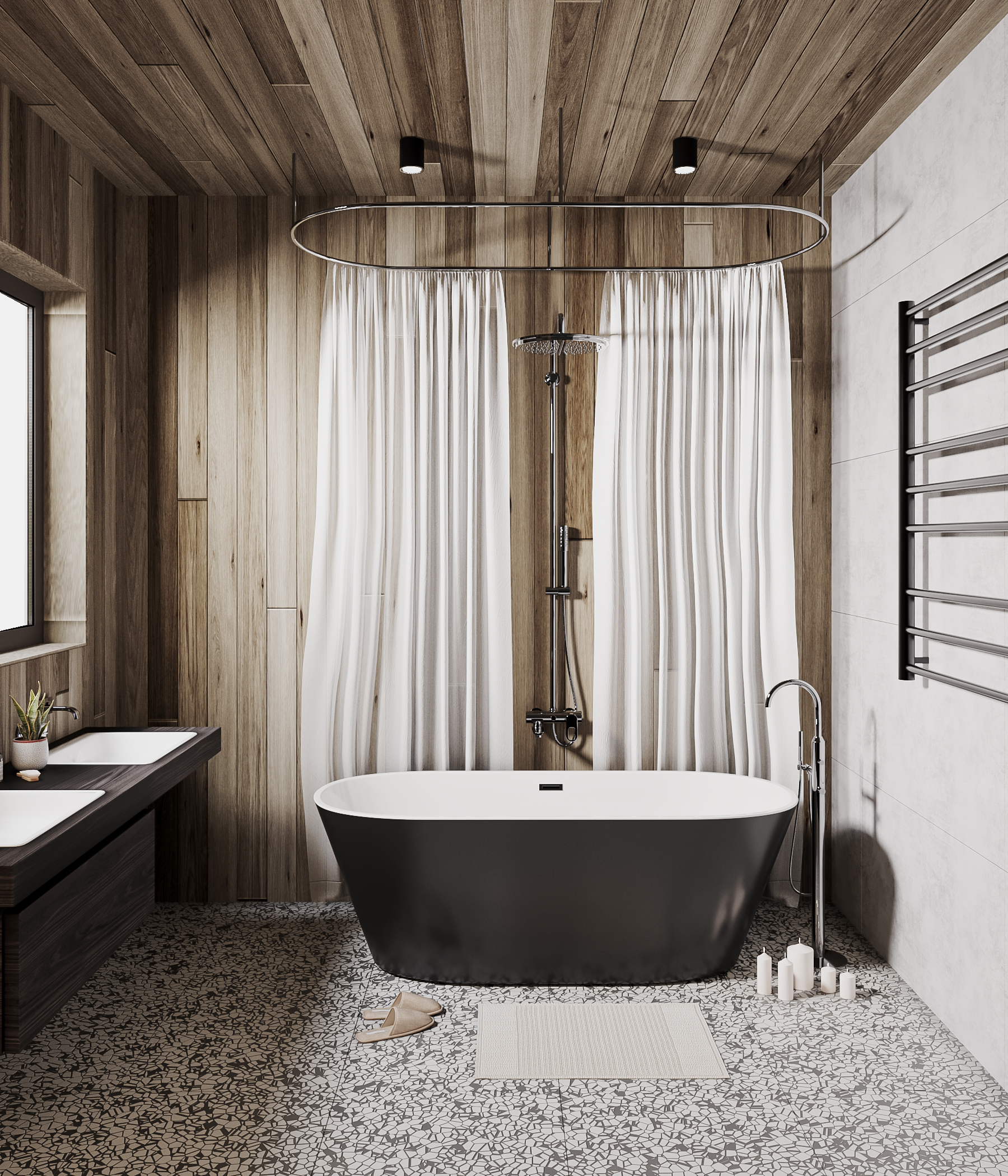 Ванна отдельностоящая Grossman Forta GR-1503MB, размеры 1700x750x580 мм, сифон в комплекте, цвет чёрный/белый матовый.
