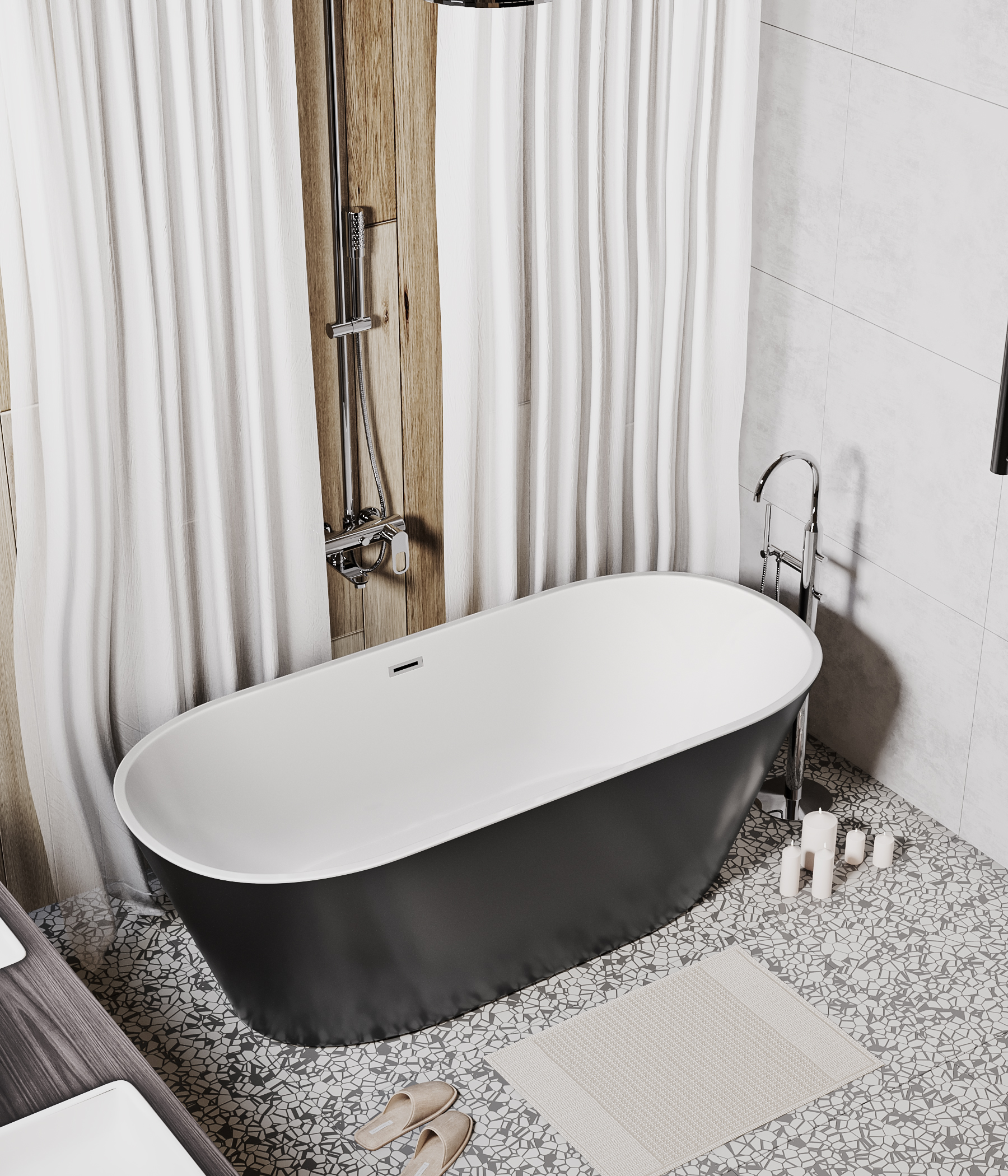 Ванна отдельностоящая Grossman Forta 170x75 см GR-1503MB, чёрный/белый матовый
