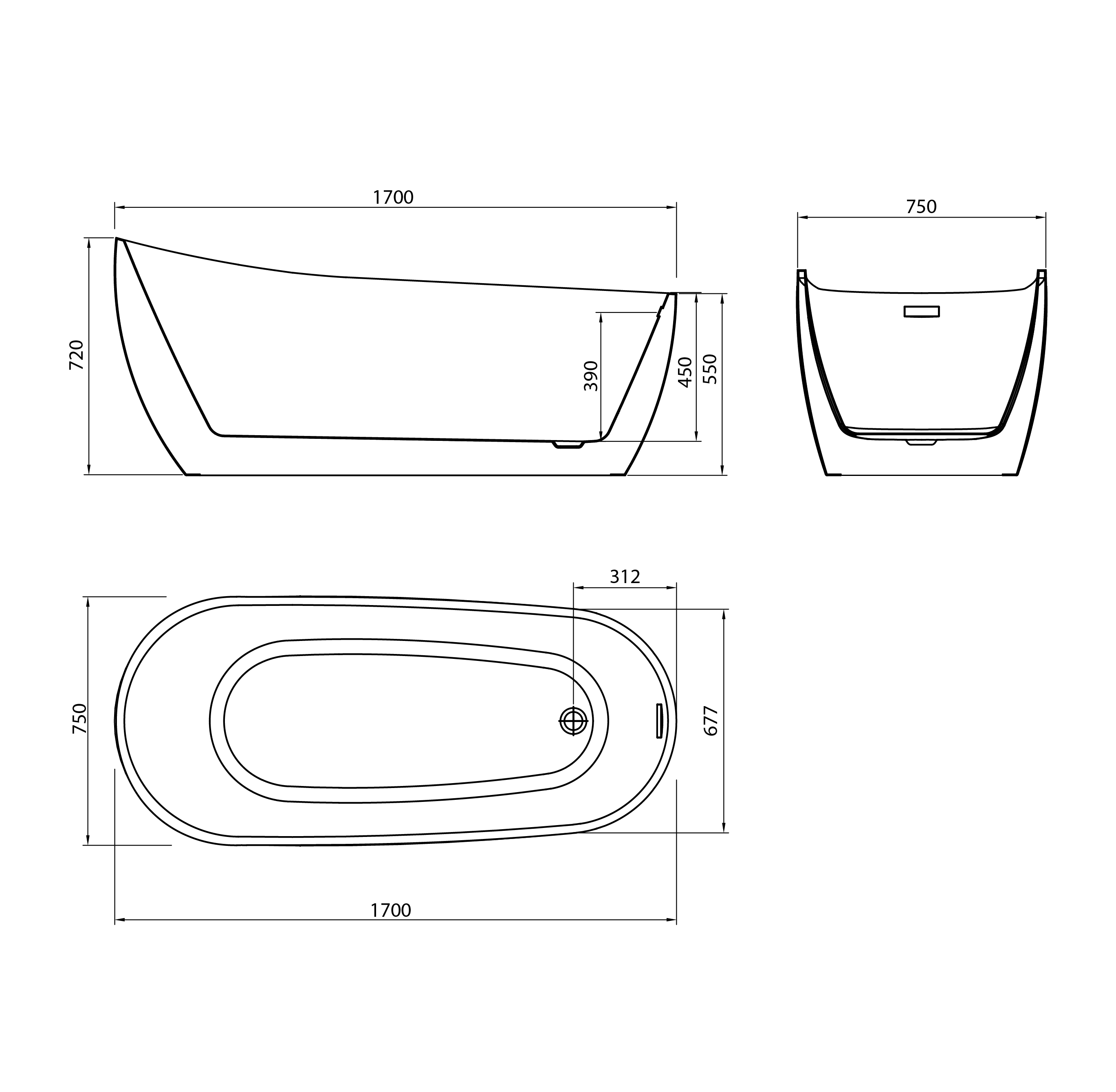 Ванна отдельностоящая Grossman Galaxy 170x75 см GR-1403