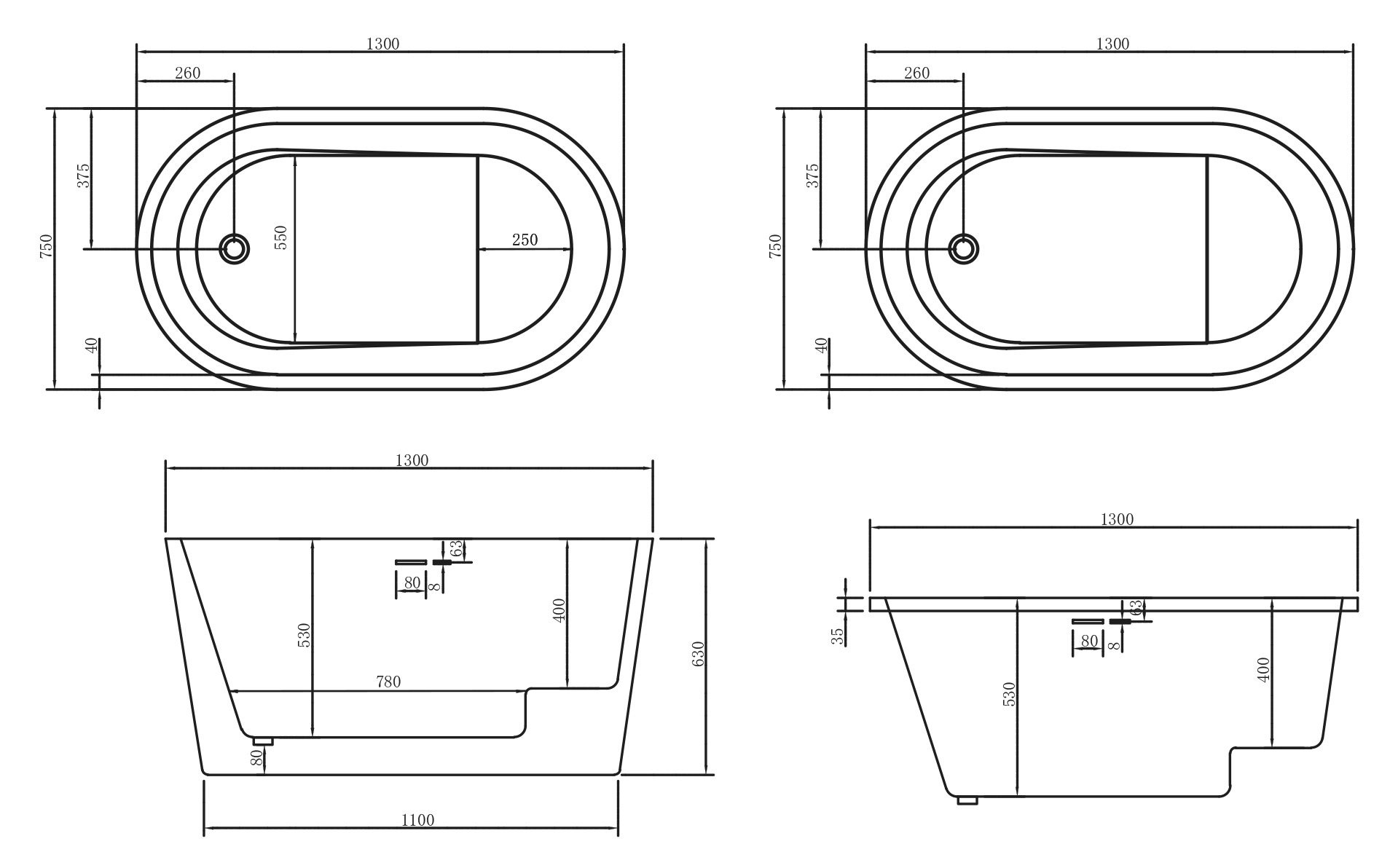 Ванна отдельностоящая сидячая Abber AB9277 130x75 см