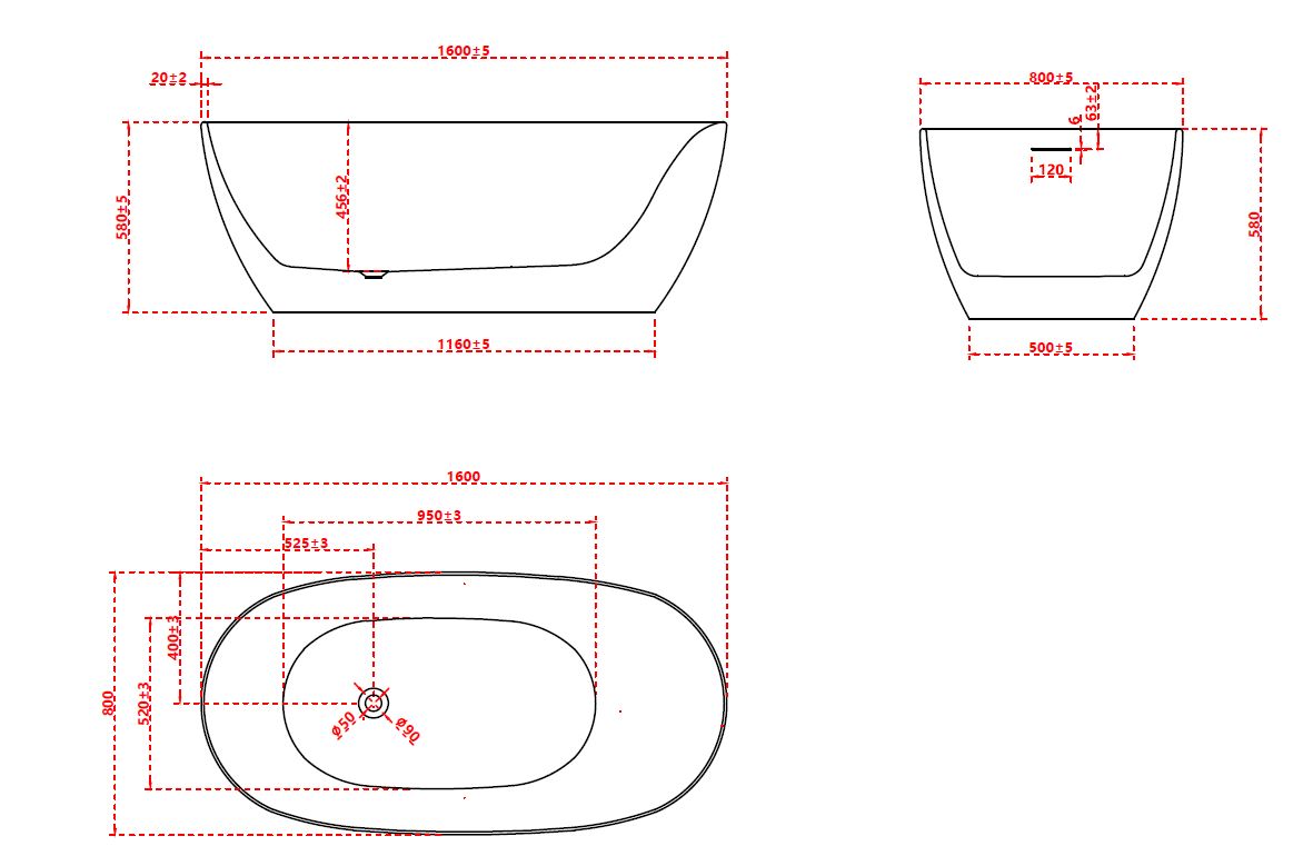 Ванна отдельностоящая Vincea 160x85 см VBT-601-1600, слив-перелив в комплекте, цвет белый.