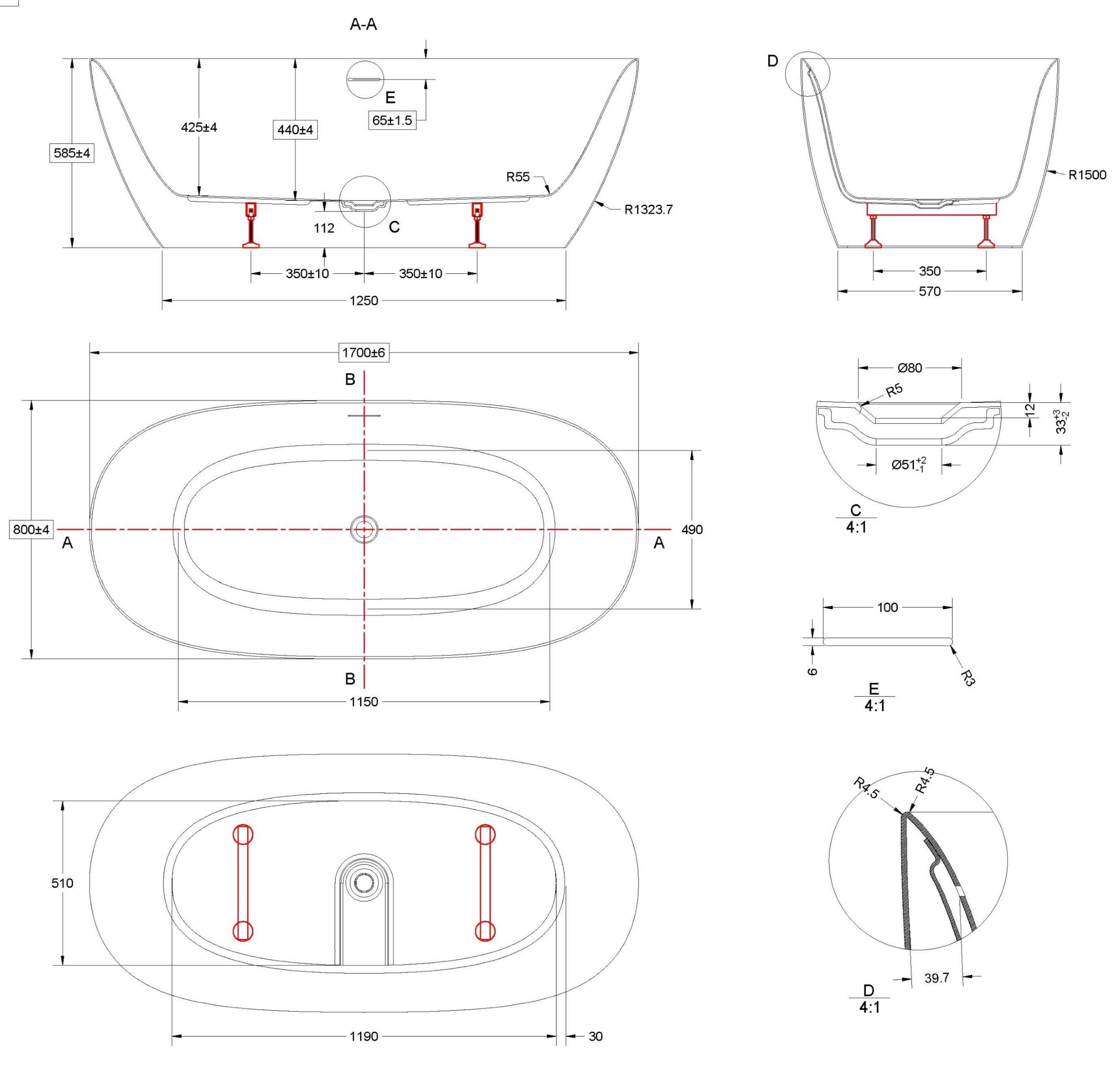 Описание ванна Vincea VBT-708-1700