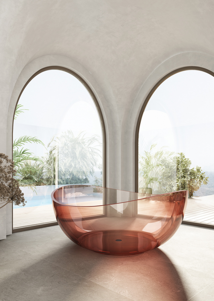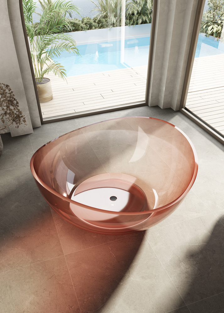 Ванна прозрачная Abber Kristall 150x150 см AT9705Koralle из полиэфирной смолы, донный клапан и сифон в комплекте, цвет - розовый.