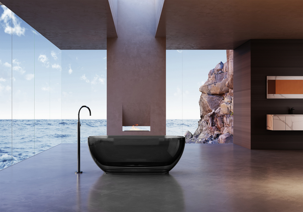 Ванна прозрачная Abber Kristall 170x75 см AT9703Onyx из полиэфирной смолы, донный клапан в комплекте, цвет - чёрный.