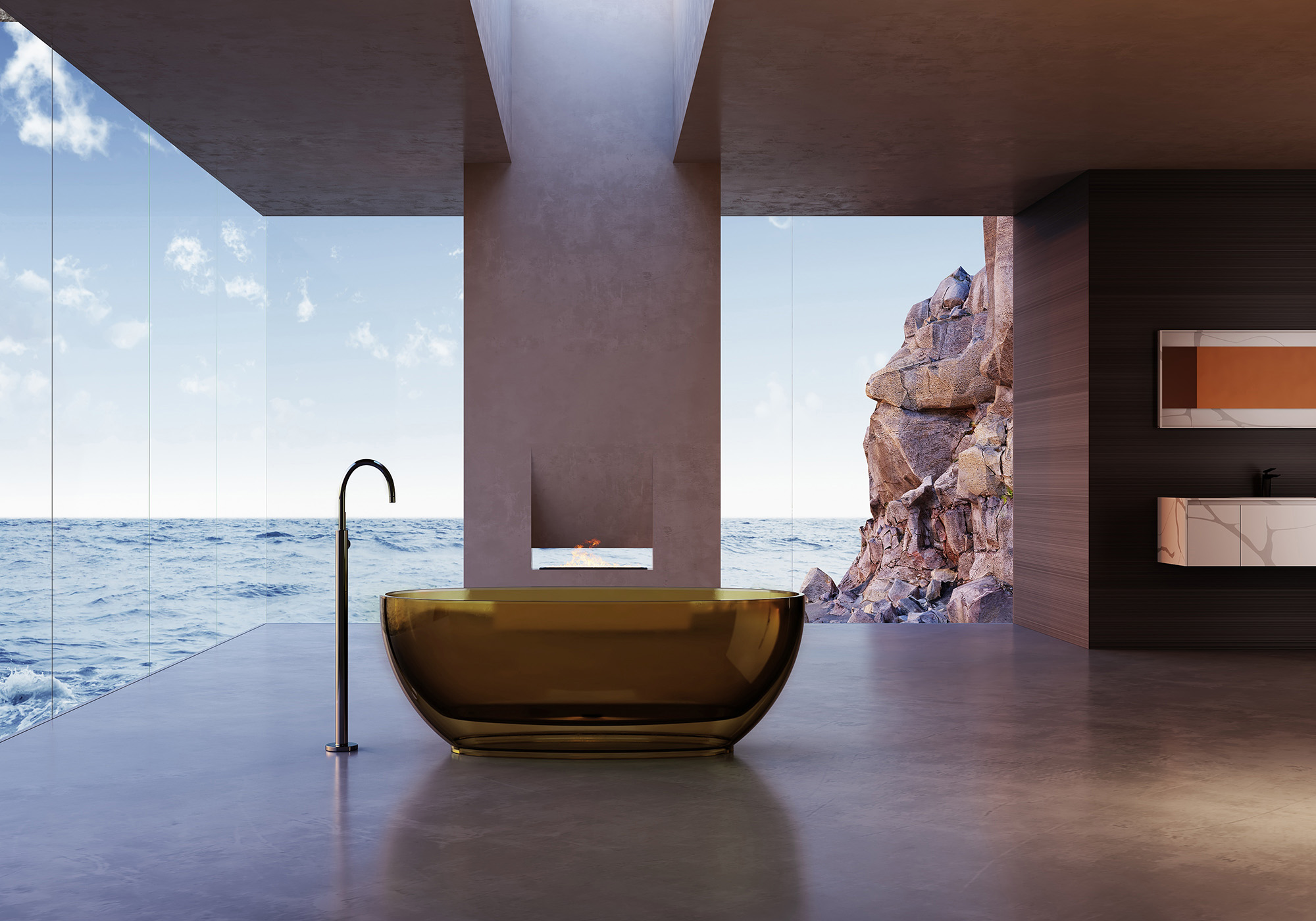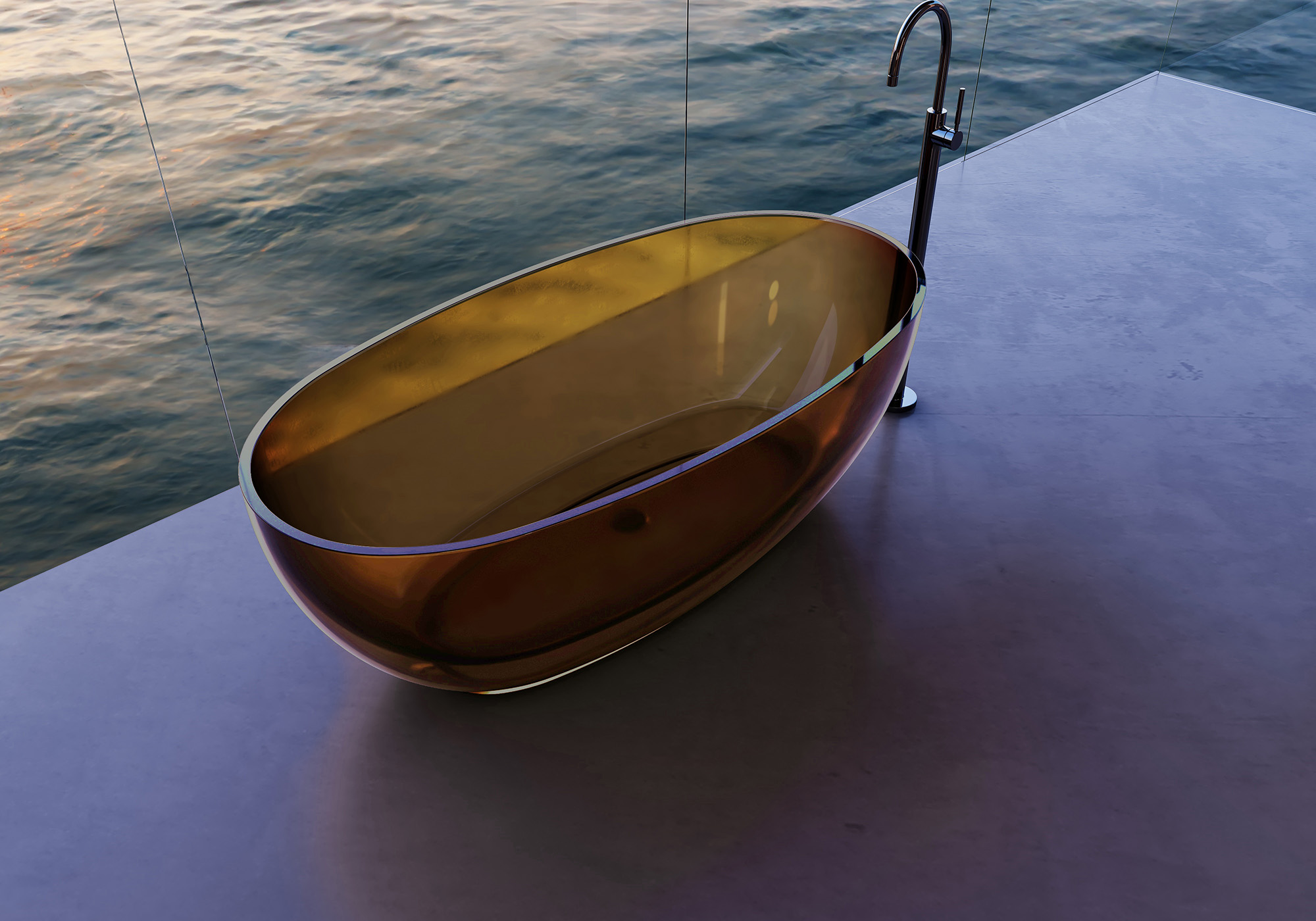 Ванна прозрачная Abber Kristall 170x75 см AT9703Vesuvian из полиэфирной смолы, донный клапан в комплекте, цвет - оливковый.