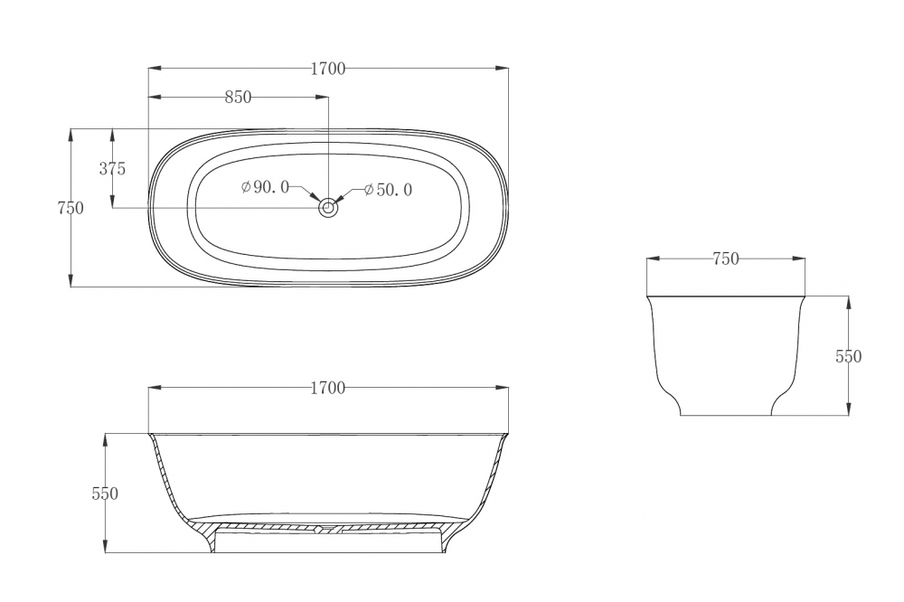 Ванна прозрачная Abber Kristall 170x75 см AT9707Aquamarin из полиэфирной смолы, донный клапан в комплекте, цвет - бирюзовый.