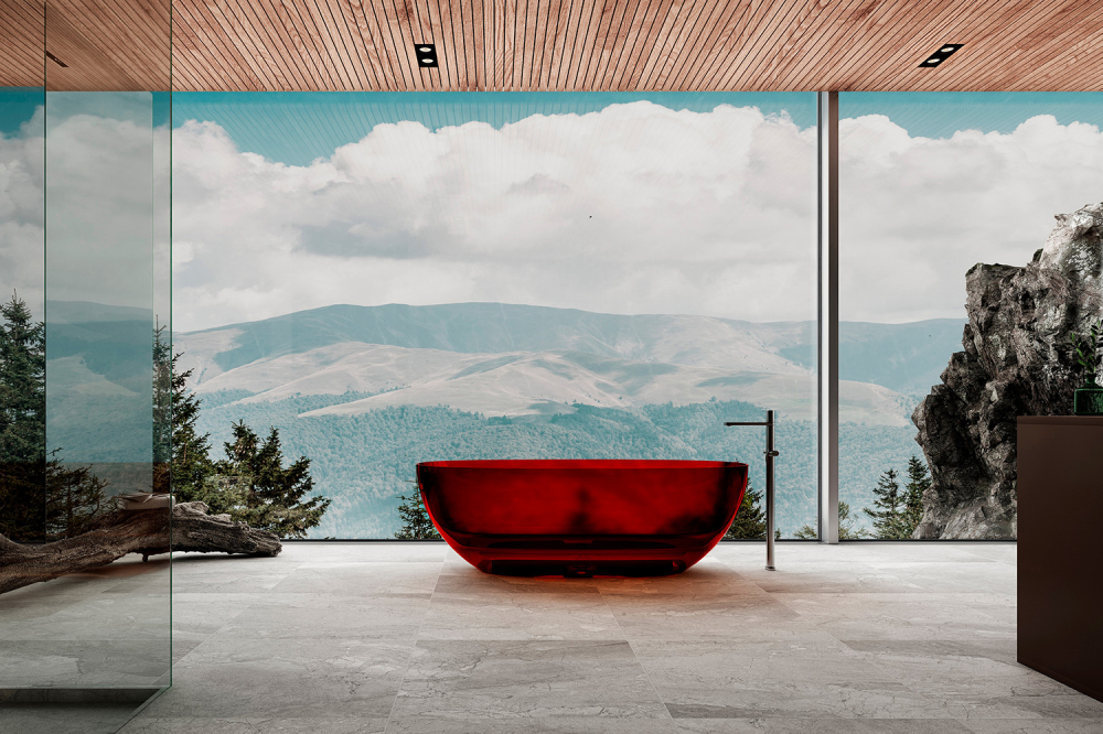 Ванна прозрачная Abber Kristall 170x78 см AT9703Rubin из полиэфирной смолы, донный клапан и сифон в комплекте, цвет - красный.