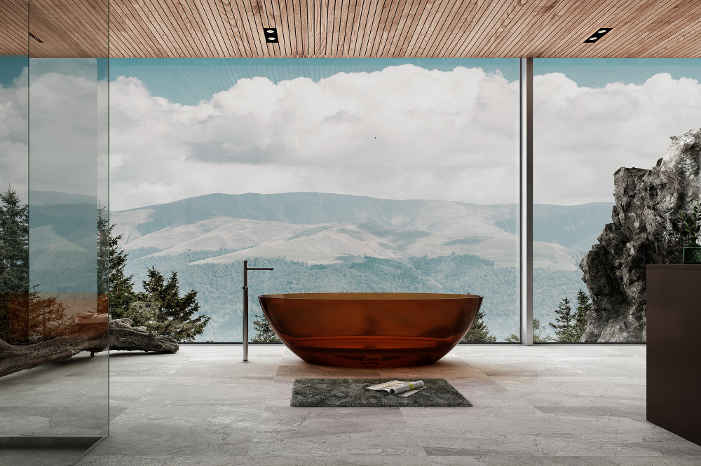 Ванна прозрачная Abber Kristall 180x85 см AT9702Opal из полиэфирной смолы, донный клапан в комплекте, цвет - красный.