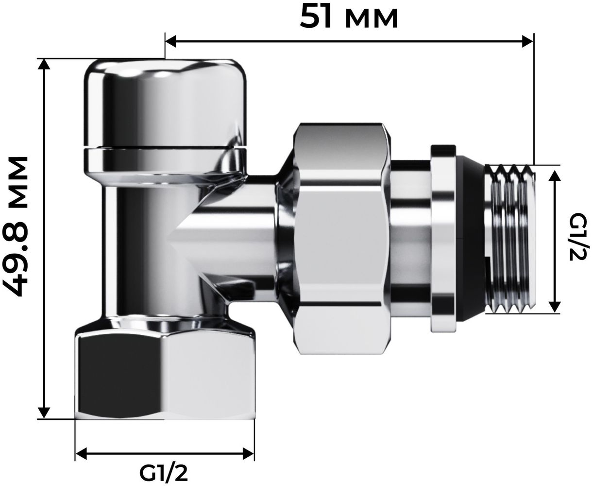Вентиль термостатический осевой Royal Thermo Design 1/2"М30х1,5 RATVDO11212CH, цвет хром.
