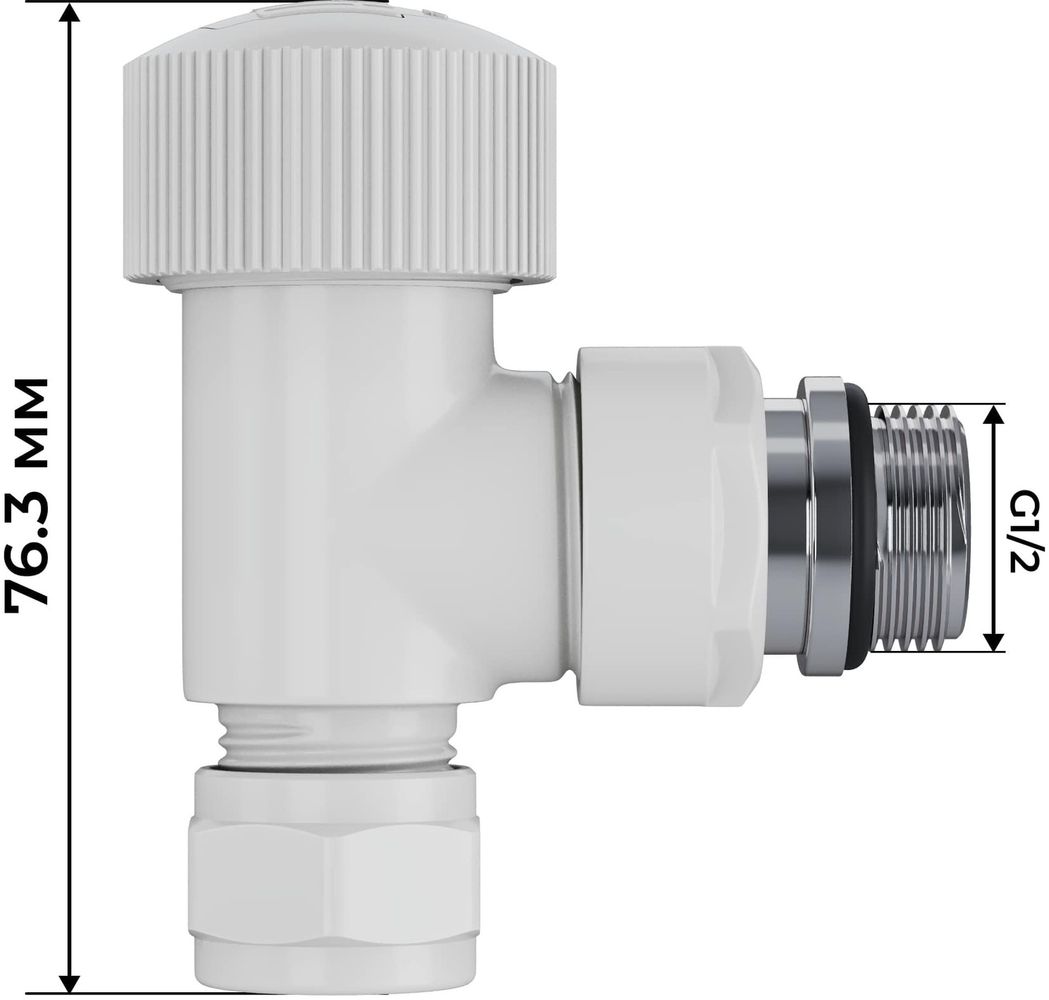 Вентиль термостатический угловой Royal Thermo Design Pro 15мм М30х1,5 RATVXU11215WH, белый