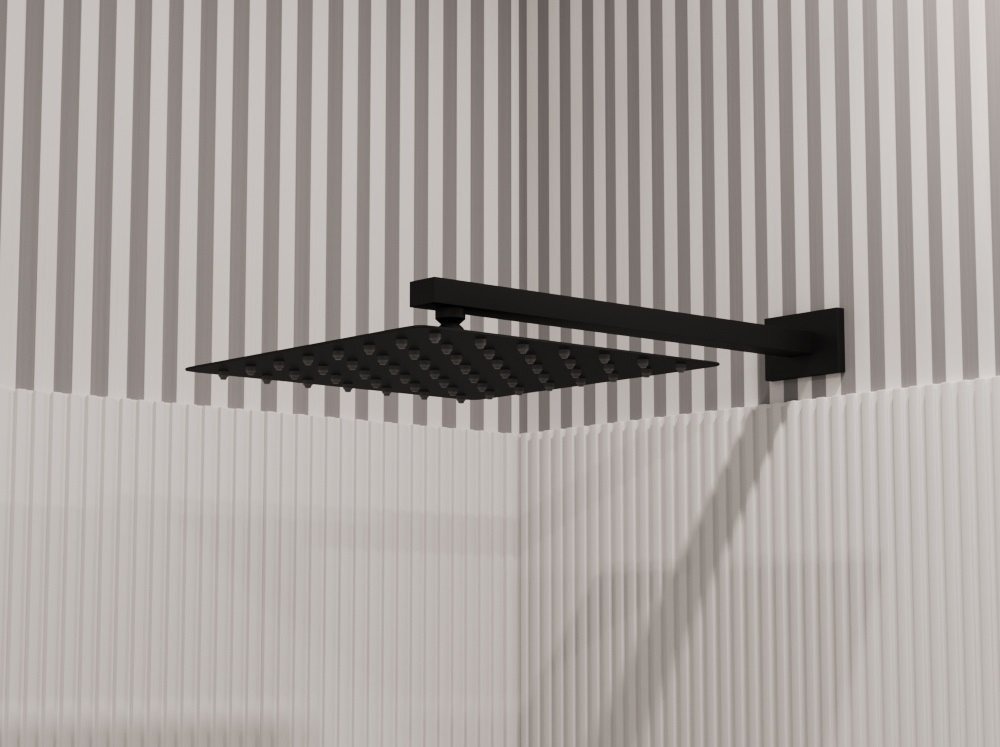 Верхний душ Allen Brau Infinity 300х300 мм 5.21A19-31 с настенным кронштейном, материал - латунь, цвет - чёрный матовый.