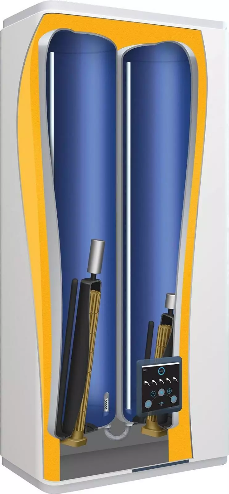 Водонагреватели серии Vertigo Steatite WiFi имеют два бака. В каждом используется стеатитовый нагревательный элемент, который не контактирует с водой. «Сухой» ТЭН защищен стальной эмалированной колбой. Благодаря технологии Steatite бак максимально защищен от коррозии и образования накипи, что гарантирует длительный срок службы водонагревателя.