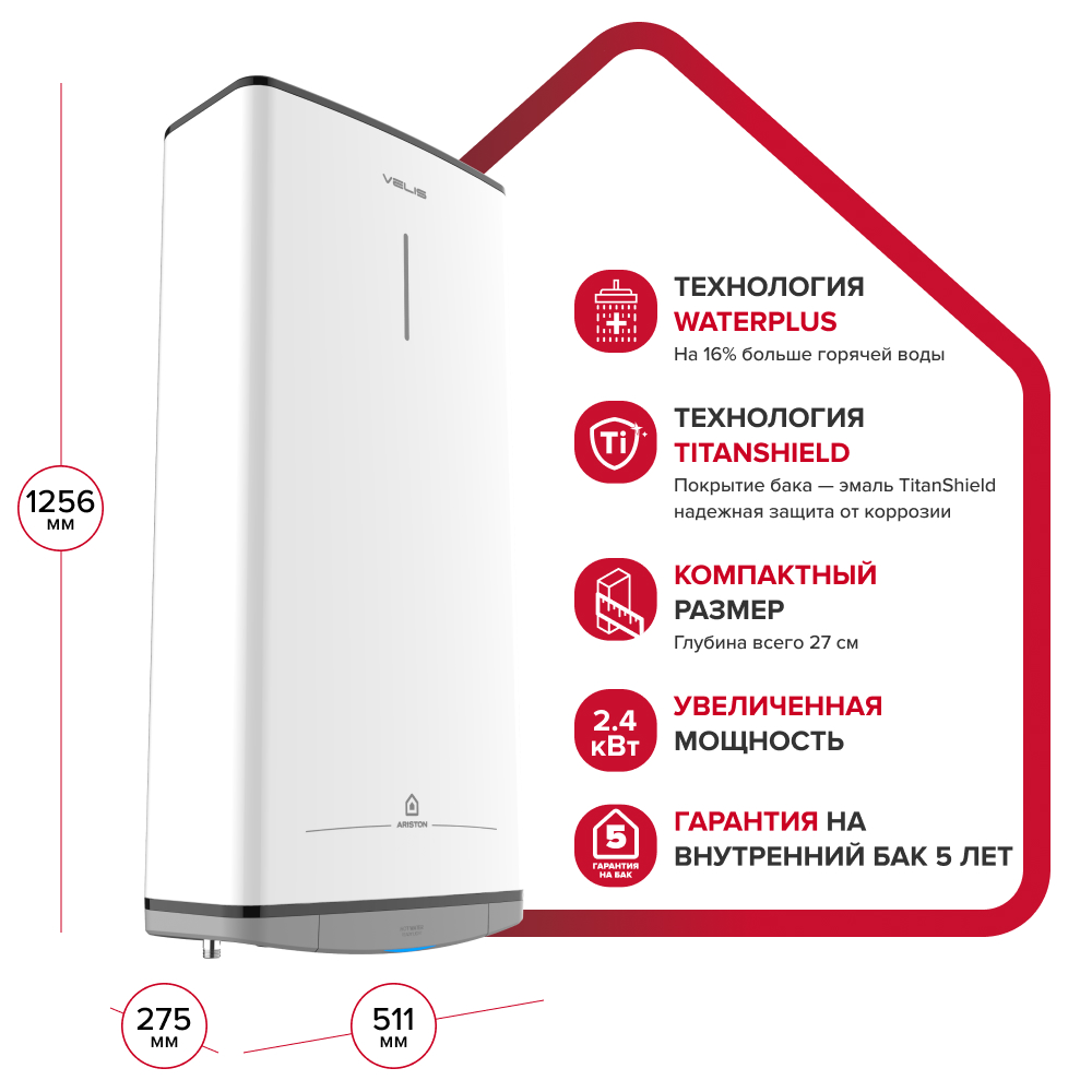 - +16% горячей воды за то же время благодаря технологии WaterPlus