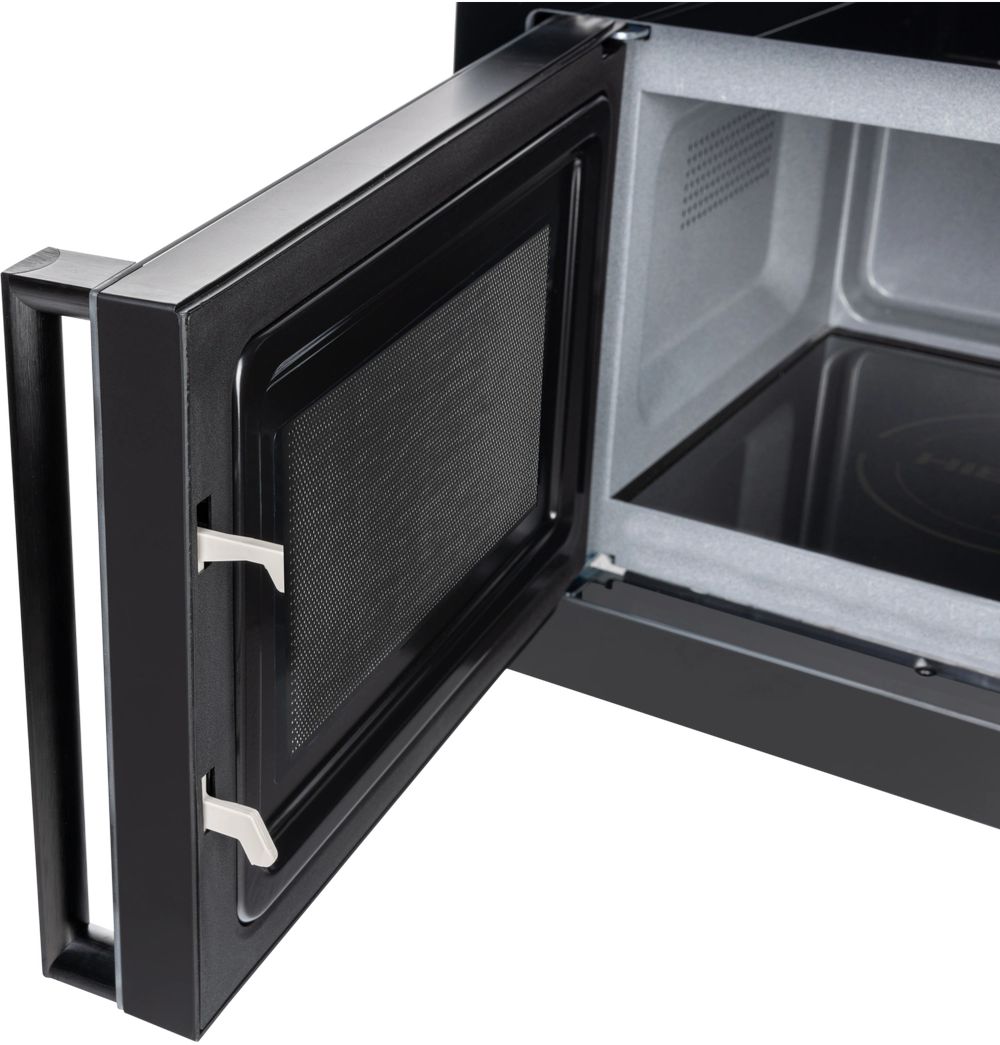 - Еще одно уникальное преимущество модели — стеклокерамическое дно без поворотного стола. Микроволновое излучение исходит со дна камеры, благодаря чему пища нагревается равномерно. На гладкую поверхность можно ставить посуду любой формы и размера, разогревать или размораживать несколько блюд одновременно. Кроме того, за стеклокерамическим дном легко ухаживать, оно безопасно в использовании. Камера оснащена эмалированным покрытием, оно устойчиво к механическим повреждениям, удобно в уходе, легко очищается от загрязнений.