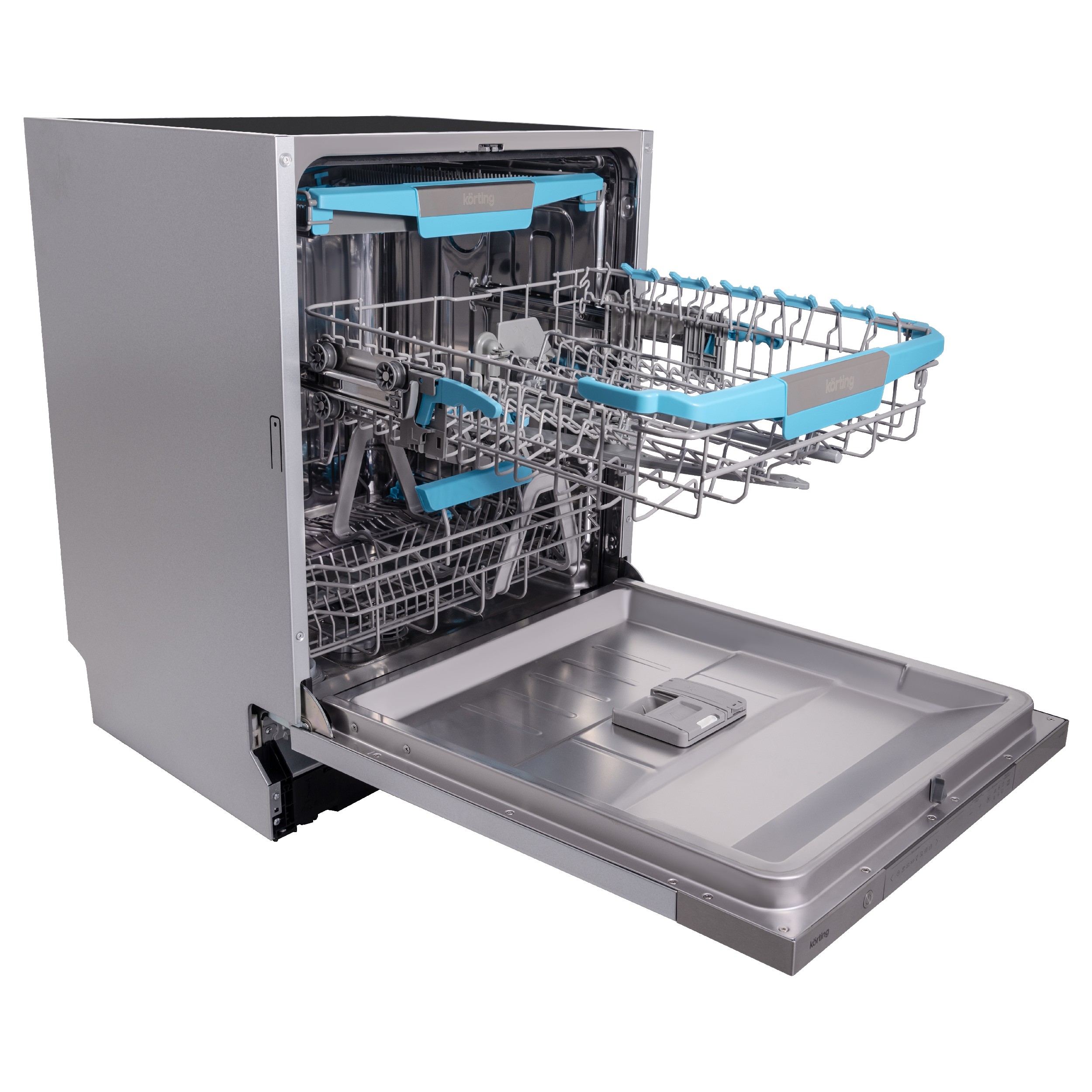 Посудомоечная машина KDI 60977 шириной 60 см — это современный встраиваемый бытовой прибор, вмещающий до 14 комплектов посуды. Модель оснащена тремя корзинами, включая специально предназначенную для столовых приборов корзину «C-Shelf», которая позволяет удобно размещать множество предметов, в том числе длинных — ножи и лопатки. Машина оснащена держателем для безопасного мытья бокалов (до 6 штук) и специальной зоной для мойки бутылок и стаканов. Прибор предлагает восемь программ работы и, помимо одной из самых популярных — автопрограммы, при активации которой машина определяет степень загрязнения посуды, её количество и самостоятельно подбирает оптимальные параметры для мойки, — предусмотрен специальный режим «Гигиена». Высокая температура и длительный процесс мытья позволяют эффективно устранять остатки пищи и потенциально опасные микроорганизмы. Идеально подходит для мытья детской посуды, кухонных аксессуаров, а также для людей с ослабленным иммунитетом. Также предусмотрена функция экспресс мойки, которую можно применить практически ко всем программам: она позволяет ускорить процесс мытья без ущерба для качества отмывания загрязнений. Сенсорное управление Touch Control позволяет легко выбирать нужный режим. Функция «Луч на полу» проецирует световой индикатор на пол во время работы и отключается по завершении цикла мойки — это позволяет визуально определить, когда программа завершилась. Посудомоечная машина совместима с комбинированными моющими средствами в одной таблетке «All in 1». Для повышения удобства в повседневном использовании предусмотрена функция отложенного старта от 1 до 24 часов, а полную защиту от протечек обеспечивает система AquaControl. Инверторный мотор делает работу прибора тихой и эффективной, позволяет оптимизировать потребление электроэнергии и воды, одновременно минимизируя шумовую нагрузку.