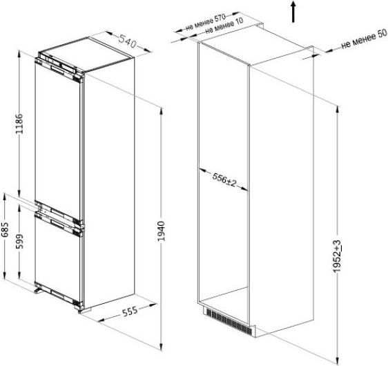 - встраиваемый двухкамерный холодильник