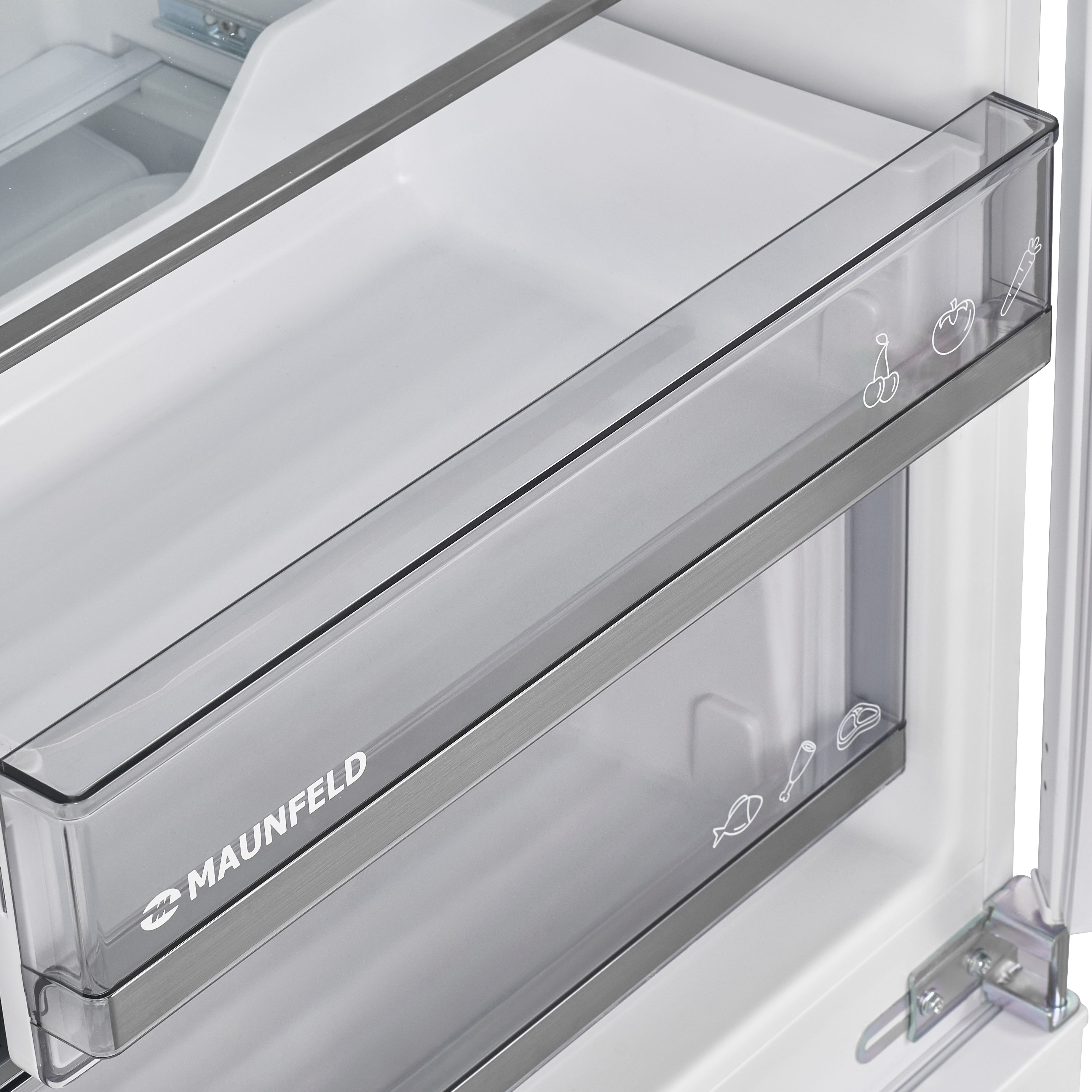Встраиваемый двухкамерный холодильник Maunfeld MBF177NFWHGR Inverter, система Full NoFrost, цвет белый.