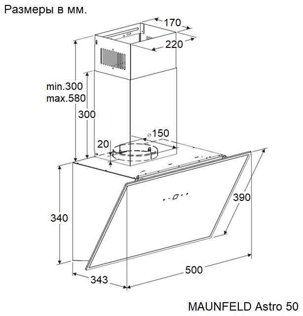 - Тип вытяжки: Наклонная