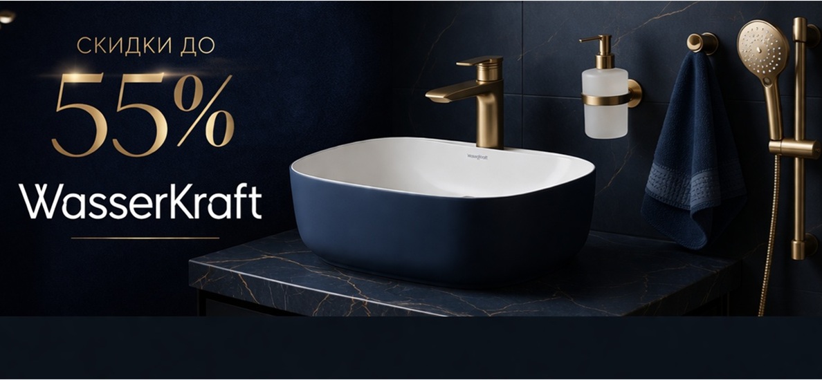 Скидка на душевые ограждения, поддоны, шторки, смесители и аксессуары WasserKraft - 45%