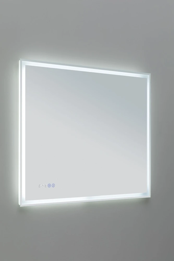 Зеркало Aquanet Оптима 90 см 00288966 с Led-подсветкой, часами, подогревом и сенсорным выключателем.