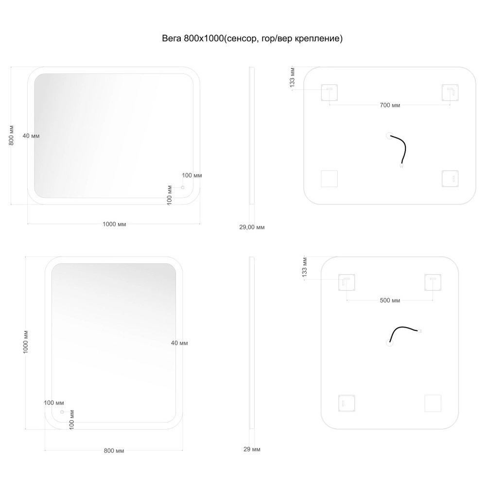 Зеркало Aquanet Вега 100 см 00330498 с Led-подсветкой и сенсорным выключателем.