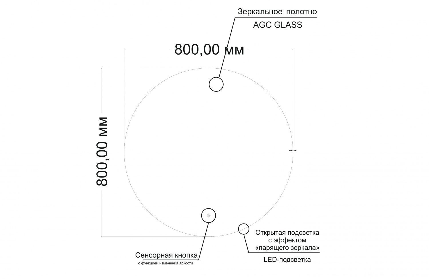 - Управление подсветкой осуществляется при помощи сенсорной кнопки с изменением яркости