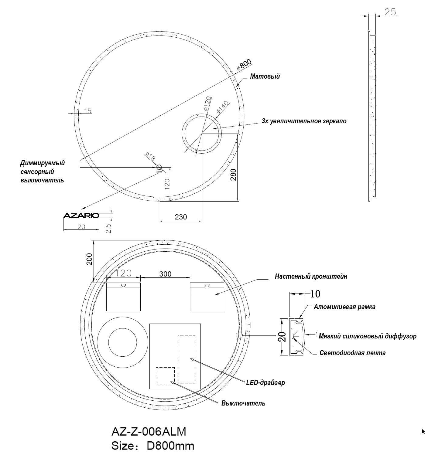 Описание зеркало Azario AZ-Z-006ALM