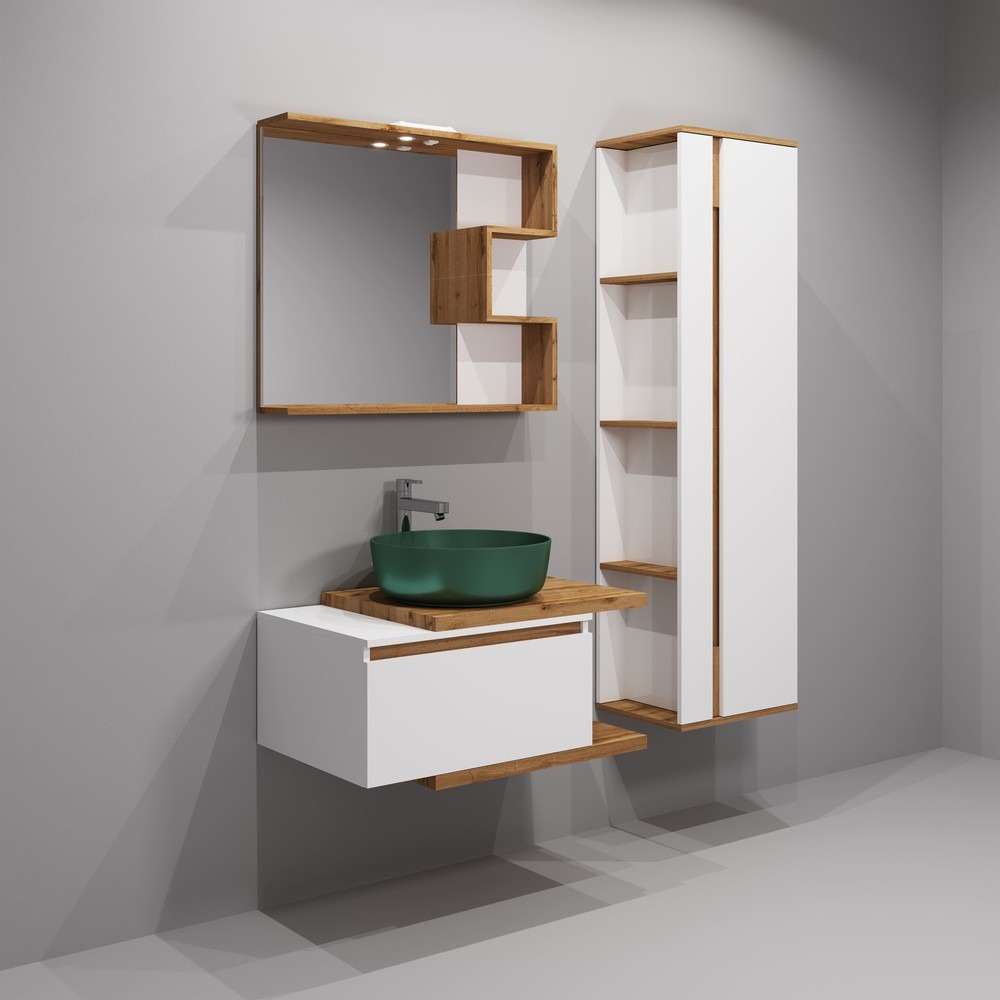 Зеркало EvaGold Forest 80 см EG010446, цвет - белый/дуб вотан.