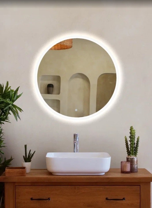 Зеркало Leia 60 — это стильный акцент в интерьере и удобный источник света. Равномерная LED-подсветка 10 000К включается сенсором и может служить основным освещением в небольшом помещении. Корпус из влагостойкого пластика устойчив к перепадам температуры и защищает внутренние элементы. Надёжная упаковка и подключение через электровилку — всё для комфорта в использовании и монтаже.