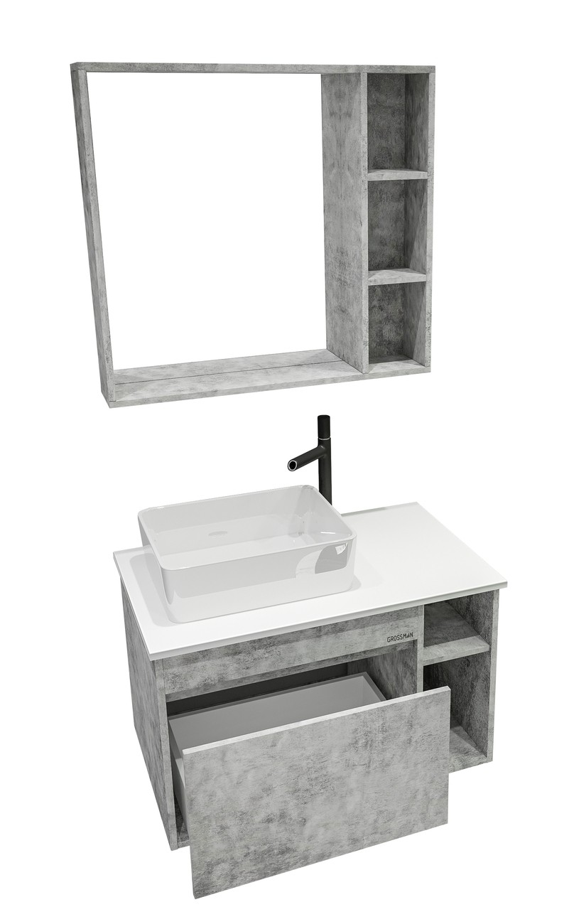 Зеркало Grossman Фалькон 80 см 208003, с полками, цвет - бетон.