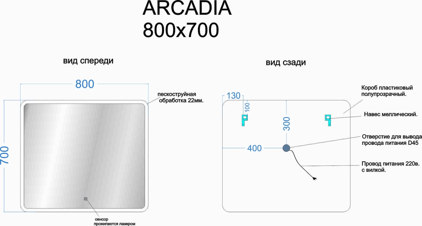 Зеркало Sancos Arcadia 80х70 см AR800 с LED подсветкой, сенсорным выключателем и диммером.
