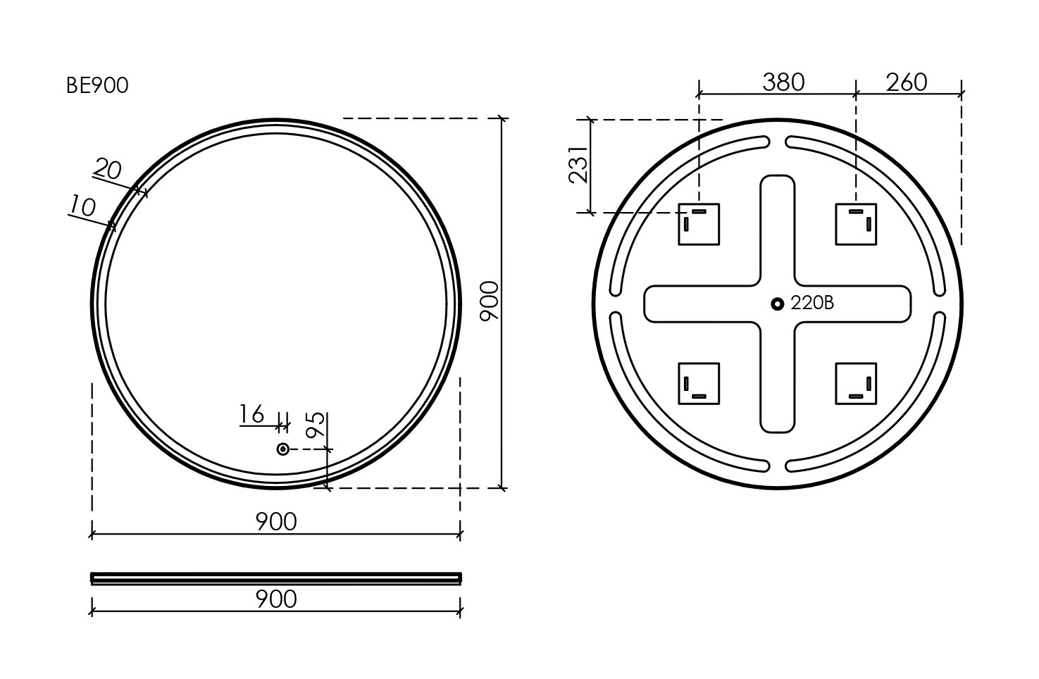 Зеркало Sancos BE900 Bella 90 см с подсветкой, диммером и сенсорным выключателем.