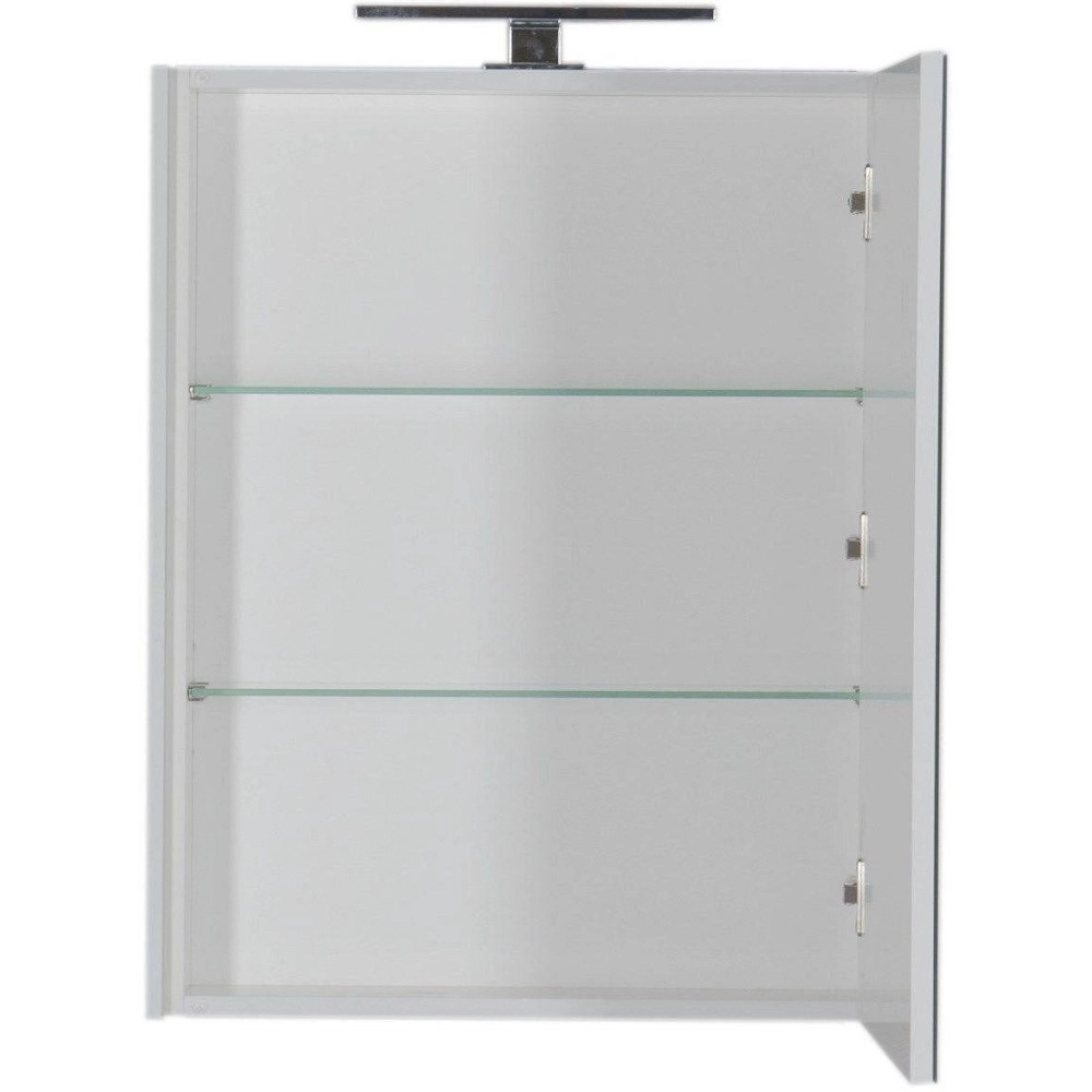 Полки зеркала-шкафа выполнены из специального ударопрочного стекла. Мягкое, в то же время достаточное по силе освещение создают экономичные внешние LED-светильники.