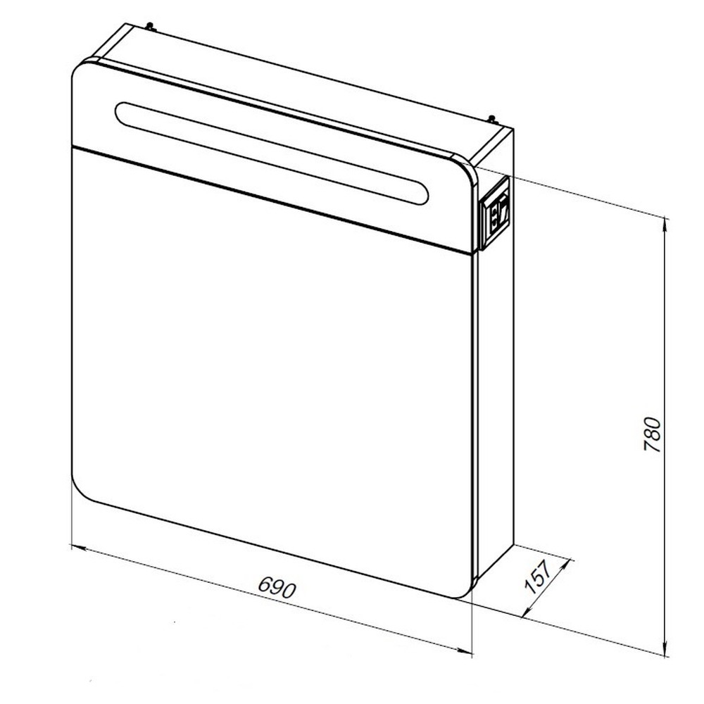 - Зеркальный шкаф комплектуется выключателем и розеткой которые расположены на корпусе.