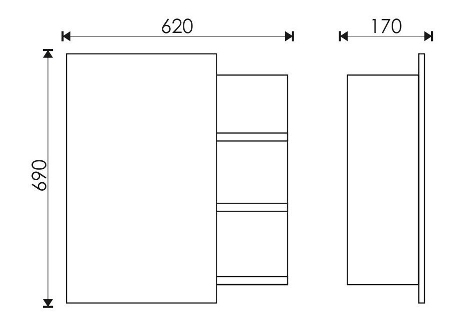 Зеркало-шкаф EvaGold Хай-тек 62 см L EG010164