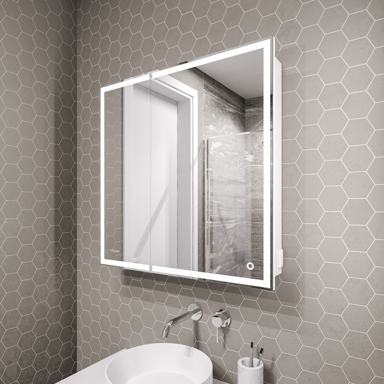 Зеркало-шкаф Grossman Меркадо 70 см 207008 с LED подсветкой и сенсорным выключателем, цветовая температура 4000К, цвет - белый.