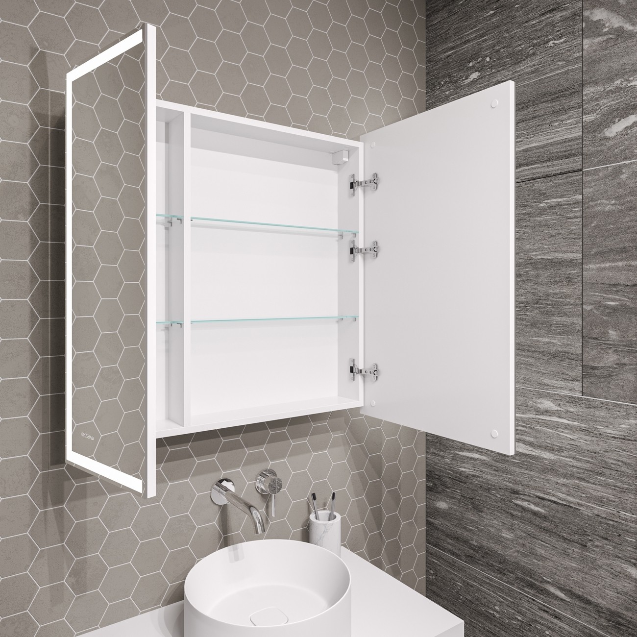 Зеркало-шкаф Grossman Меркадо 80 см 208010 с LED подсветкой и сенсорным выключателем, цветовая температура 4000К, цвет - белый.